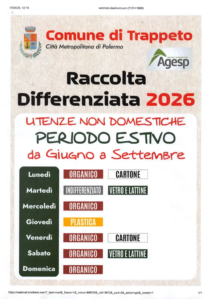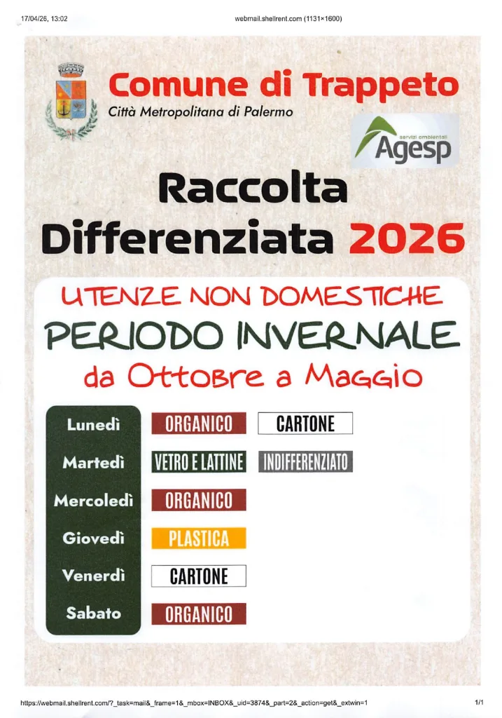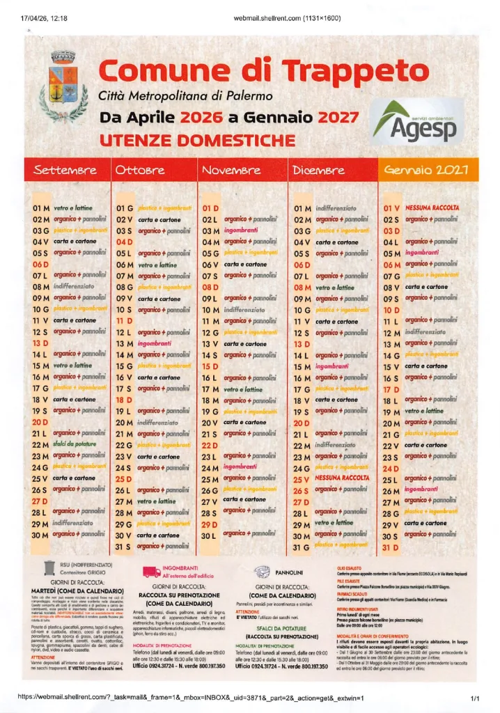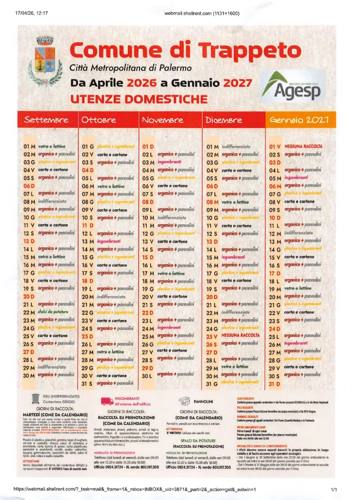 Calendario Raccolta Differenziata da Aprile 2026 a Gennaio 2027